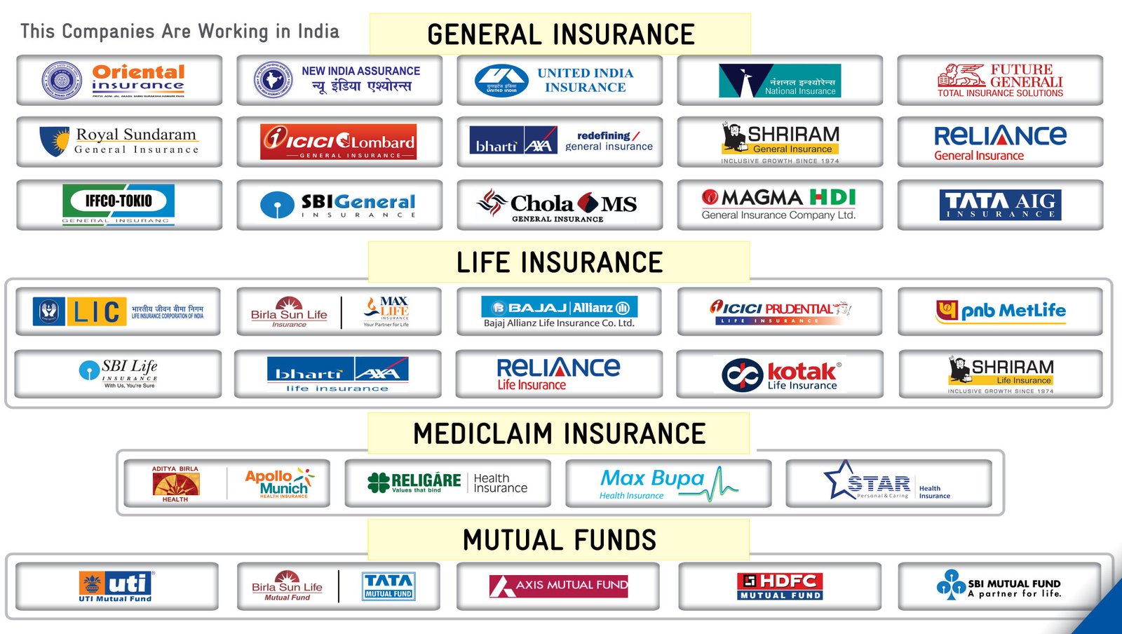 पॉलिसी विकय एवं सुझाव : जनरल इंश्योरेंस, लाइफ इंश्योरेंस, मेडिक्लेम एवं म्युचअल फण्ड के कोई भी प्लान के बिक्री या सुझाव के समय कस्टमर के जरूरत को ध्यान में रखकर सबसे बेहतर प्लान प्रस्तुत किया जाता है। सभी कपनीयों के प्रीमियम, पॉलिसी, कवरेज एवं सेवाओं का गहन अध्ययन करके सबसे उपयोगी एवं लाभदायक विकल्प का सुझाव दिया जाता है।